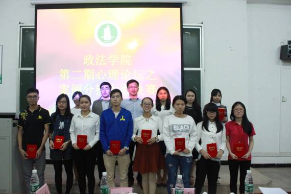 为切实做好学生心理健康教育工作,提高各班心理委员及宿舍心理信息员的专业知识和技能,增强心理健康教育工作实效,政法学院第二期心理健康论坛之案例分析大赛决赛于2015年11月11日晚上7点在北校区阶梯教室举行。政法学院党委陈军副书记,辅导员赵利老师、赵璐老师、刘文静老师以及第八届团学女生部部长施美佳同学等担任本次比赛的评委。