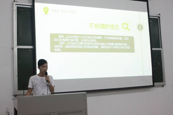 首先,由十个优秀班级心理团队分别派代表进行限时八分钟的心理案例分析展示。每个班级心理团队的发言都十分精彩,每个心理案例都相当具有代表性,几乎覆盖了整个大学生活中的心理问题。同时各个团队也分析准确,解决方法切实可行,让人受益良多。