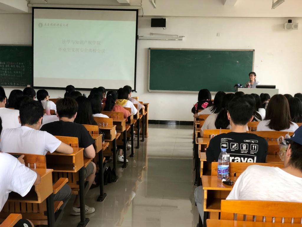 5月14日下午,我院19届法学专业毕业生安全教育会议和安全文明离校承诺书签字仪式在白云校区三教301顺利召开。