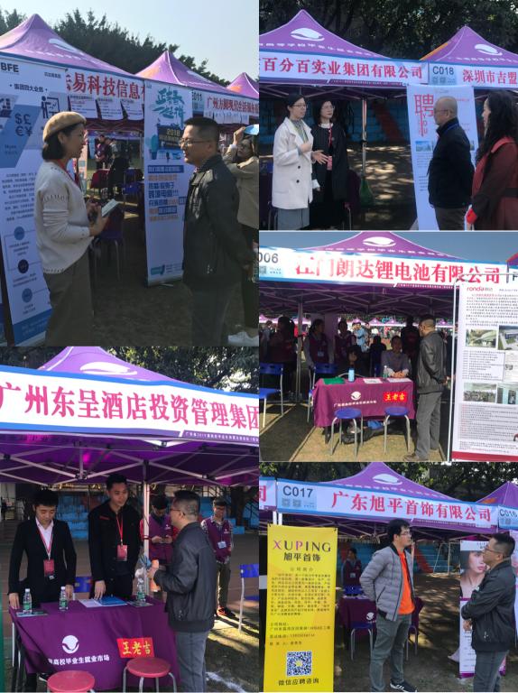 11月23日,由广东省教育厅主办、广东技术师范学院承办的广东省2019届普通高校毕业生系列供需见面活动(职业教育、经管、IT类专场)在校本部田径运动场举行,省高校就业指导中心副调研员谢向军、学院副院长潘自勉以及兄弟院校的就业督导专家一行亲临现场指导工作。