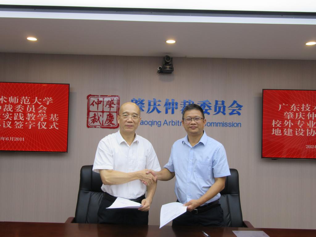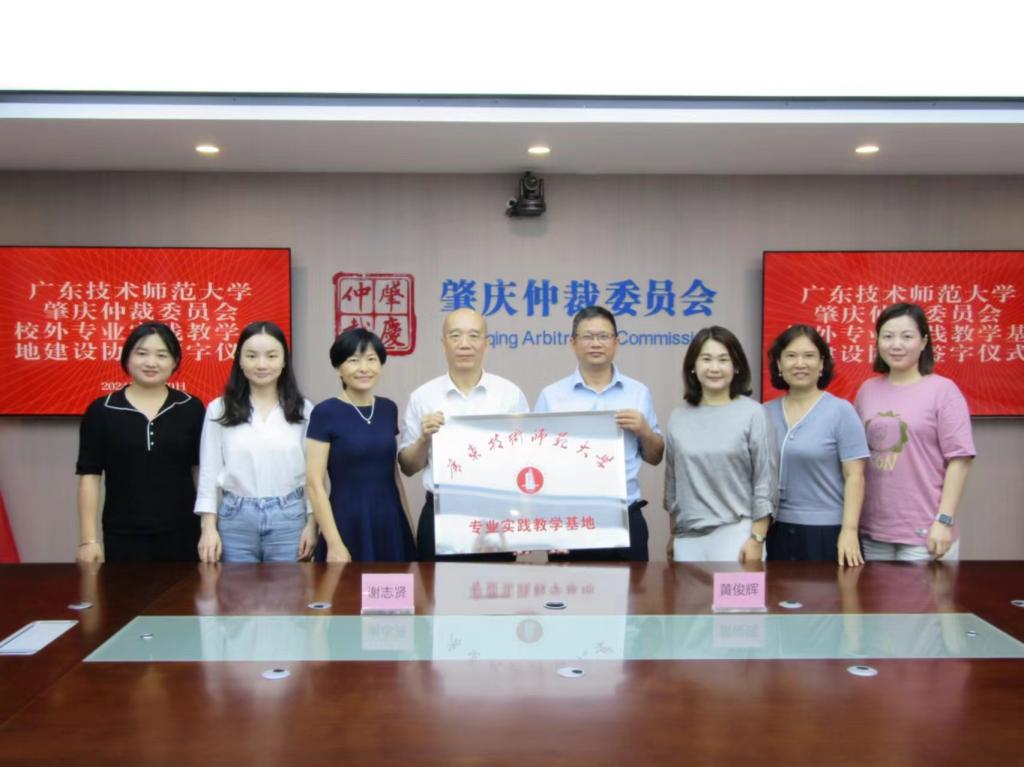 座谈会后,黄俊辉代表学校与肇庆仲裁委员会签订合作协议,并进行专业实践教学基地挂牌。