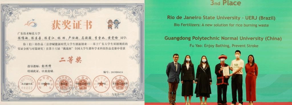 学生积极参与课外学术竞赛和创新创业竞赛,2017年以来获“挑战杯”国家级奖项2项,省级奖项9项,校级奖项14项;“互联网+”大学生创新创业竞赛省级奖项5项、校级奖项16项,“攀登计划”省级重点立项2项,勇夺首届中国与葡语国家大学生创新创业挑战赛季军。其中,项目《法律赋能新时代大学生创新创业——基于广东大学生双创现状的实政分析与对策研究》在第十五届“挑战杯”大学生课外学术竞赛获省赛法律组唯一特等奖,并获得国家级二等奖。