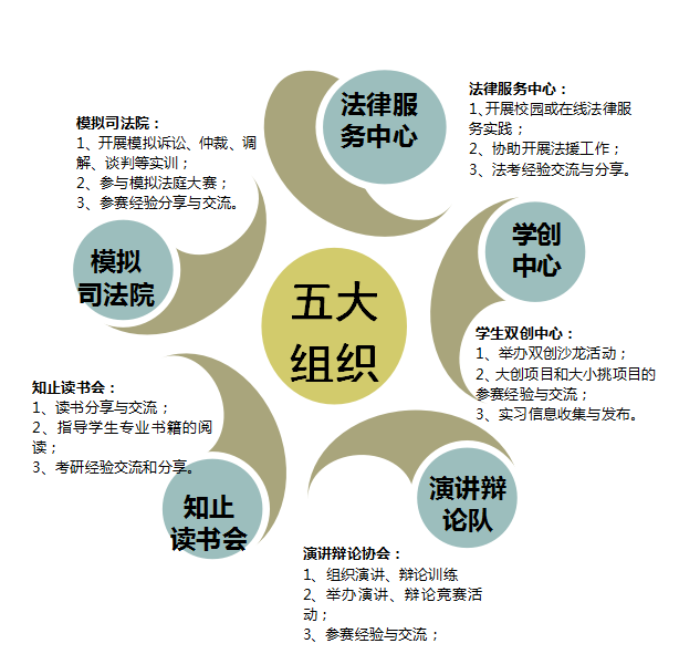 图8 法学专业学生活动五大组织示意图