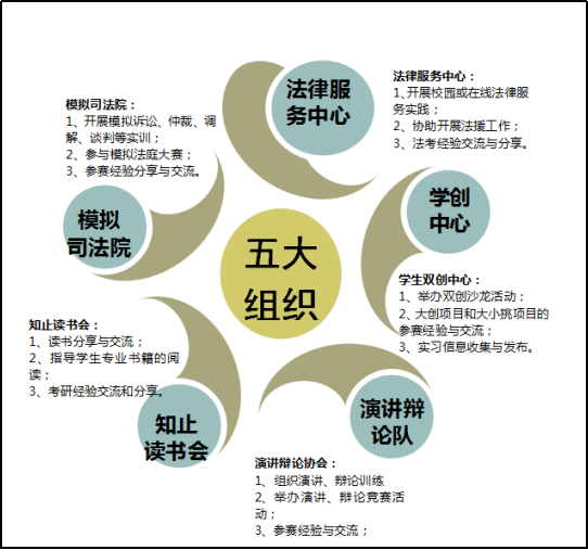 图8:法学与知识产权学院学生活动五大组织示意图