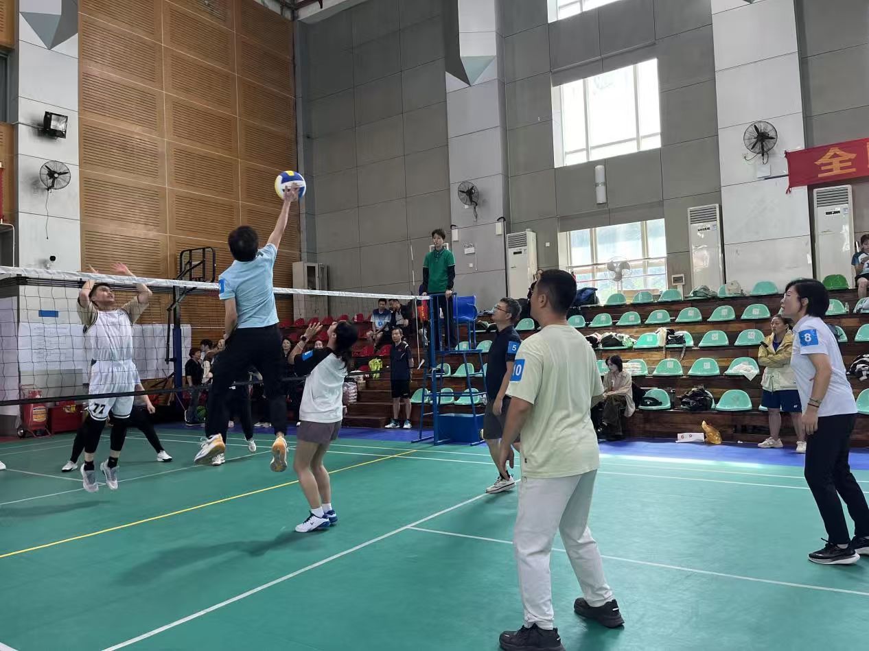 11月25日,学校2025年教职工气排球比赛在东校区综合馆举行。我院教工代表队(队员:柳建启、王沛锐、汤贞友、林蔚、周娅、李想、王文文、赵小静、李钊、黄晨璞、李雪斌)在学院党委书记许建鑫和团队教练王丽颖的带领下积极参赛,以C组第二名的优异成绩成功闯入16强。