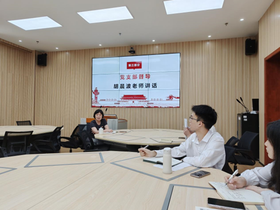 第三项议程,党支部督导胡晨波老师总结发言。胡老师表示,本次专题组织生活会是一场有温度、有高度的生活会,同志们直面问题、求真务实,积极开展批评和自我批评,是对党员党性的自我净化和提高,同志们要加强理论学习、专业学习,进一步提高思想站位,充分发挥好党员的先锋模范作用,争做有理想、敢担当、能吃苦、肯奋斗的新时代好青年。