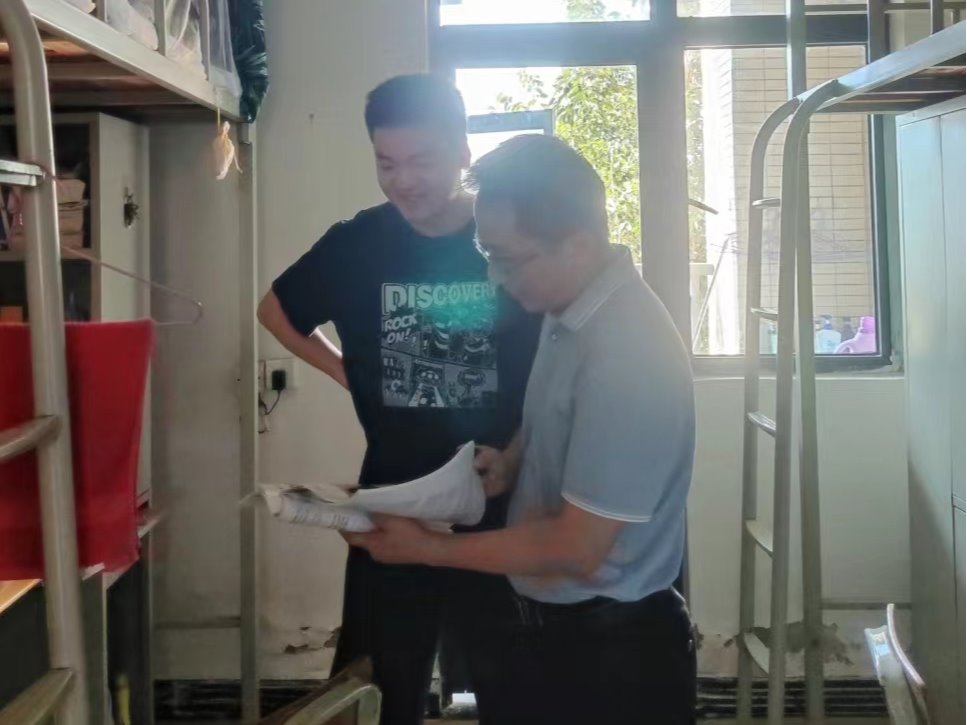 加强排查,消除隐患。9月30日,许建鑫、李雪斌等一行人深入课堂、实验室、学生寝室开展节前安全检查,重点对实验室设备使用、宿舍卫生、用电安全、消防安全等诸多方面进行了全面检查。李雪斌、胡晨波等一行还与同学们进行了亲切交谈,了解学生在校学习、生活和国庆期间计划安排有关情况,叮嘱留校学生要严格遵守学生宿舍管理相关规定,保持清洁卫生,严禁使用大功率危险电器等违规物品,防患于未然,确保节日期间校园安全稳定。